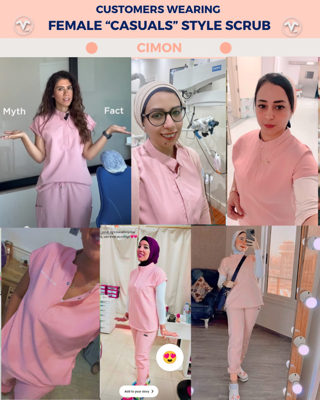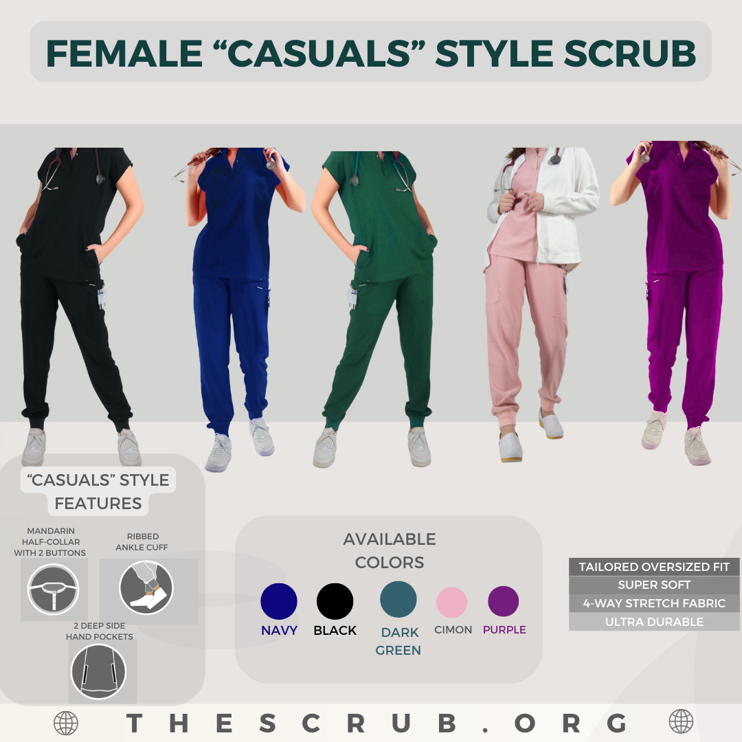 / “FEMALE CASUAL” STYLE SCRUB [ ROUND-HALFNECK TOP + RIBBED SWEATPANTS ] – Cimon Color