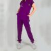 “FEMALE CASUAL” STYLE SCRUB [ ROUND-HALFNECK TOP + RIBBED SWEATPANTS ] – Purple Color